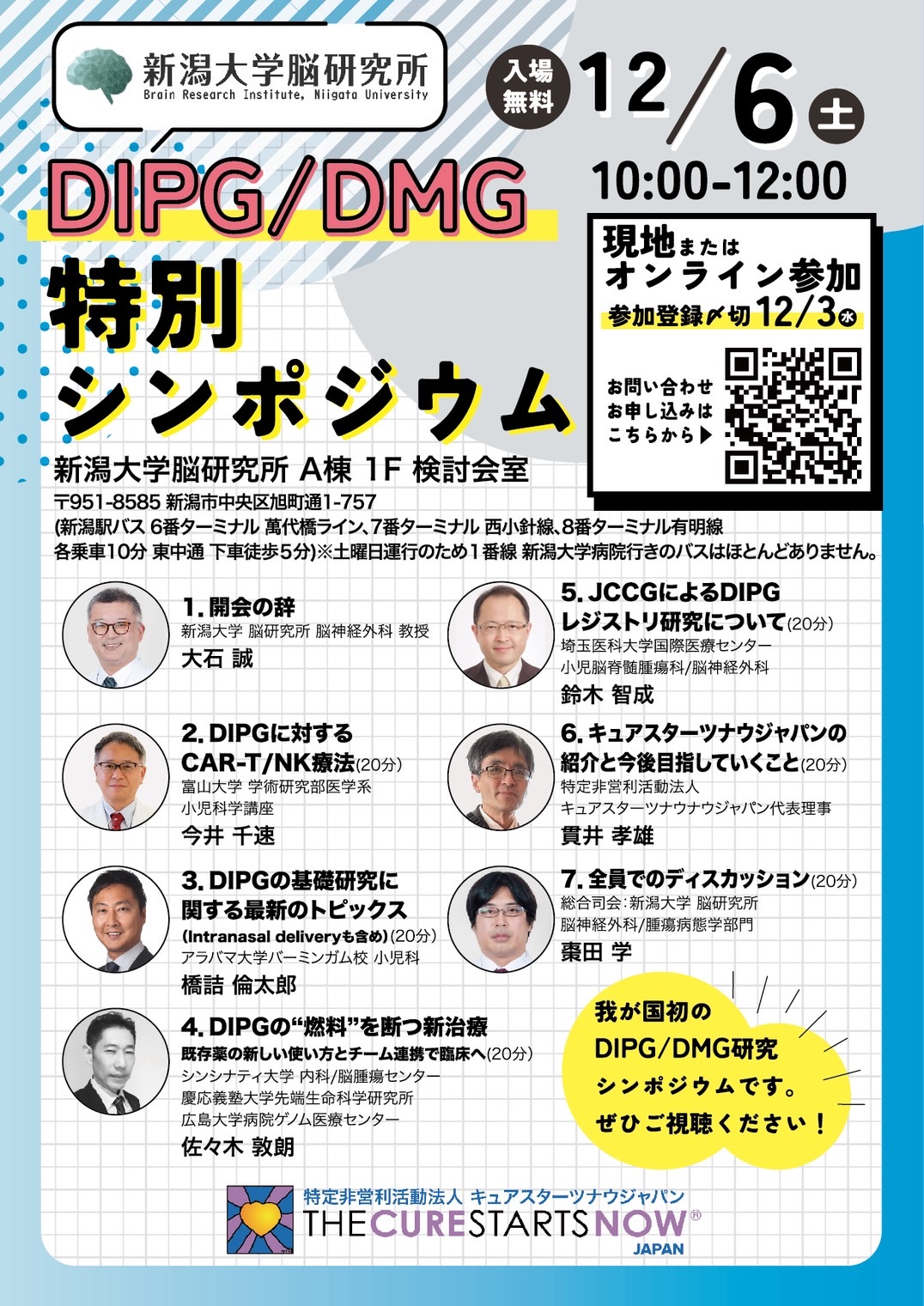 新潟大学脳研究所とCSNJによるDIPG/DMGの研究シンポジウムを開催致します。